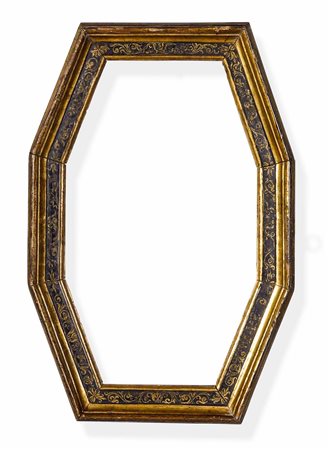 Lotto 15 Cornice ottagonale in legno ebanizzato e dorato. Italia centrale XVII secolo, cm 43x65 luce cm 31x53