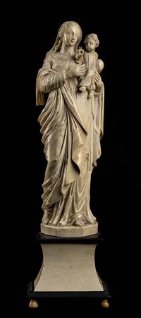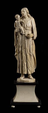 Scultura in avorio raffigurante Madonna con Bambino - probabilmente Germania, ultimo quarto XIX Secolo.