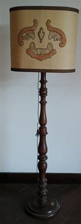 Lotto 10 LAMPADA DA TERRA IN LEGNO TORNITO CON PARALUME RICAMATO H.CM.168