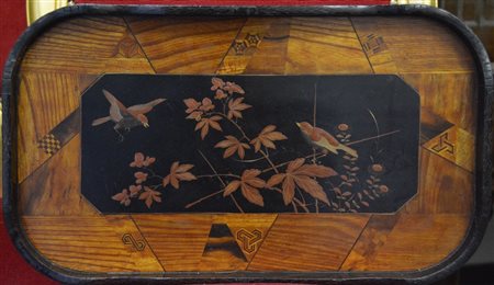 Lotto 12 VASSOIO IN LEGNO DECORATO AD INTARSI CM.54X32X4