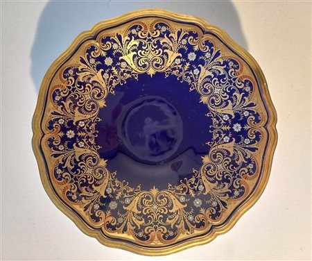 Lotto 14 ALZATA IN PORCELLANA ROSENTHAL DECORATA IN BLU E ORO DIAMETRO CM.29 H.CM.7
