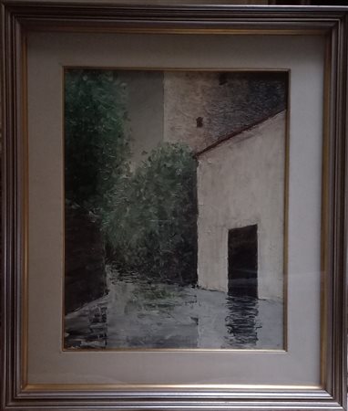 Lotto 22 IGNOTO - SCORCIO DI PAESE OLIO SU CARTONE TELATO CM.50X40