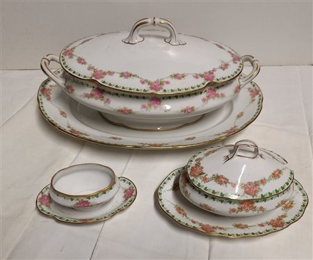 Lotto 23 ZUPPIERA CON VASSOIO E DUE SALSIERE IN PORCELLANA GINORI DECORATA