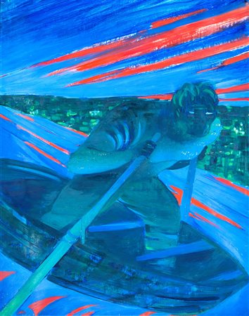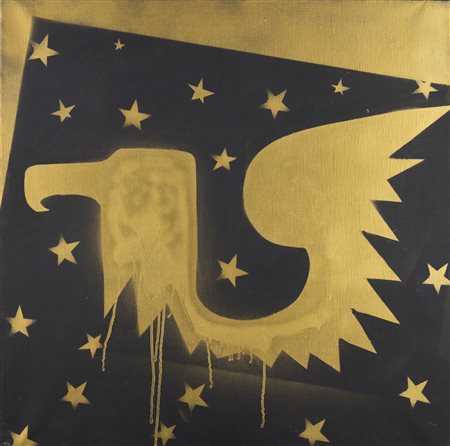 Smalto, spray, tempera e pastelli su tela, cm 100x70