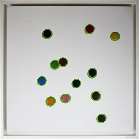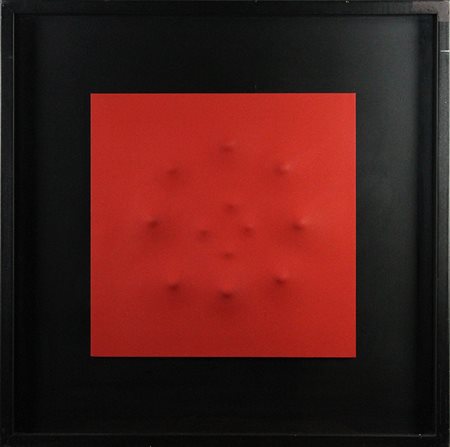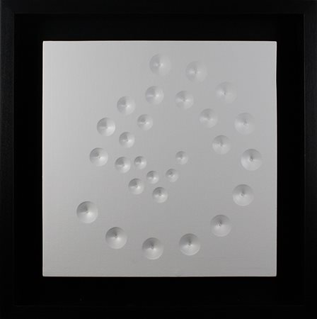Lotto 13 STEFANO BRUNELLO, "Progressione Pitagora", 2010, Tela estroflessa, Dim. 50x50, Opera Archiviata con n° AP14/10, Al verso: titolo, anno, n° archivio e firma, Opera con cornice