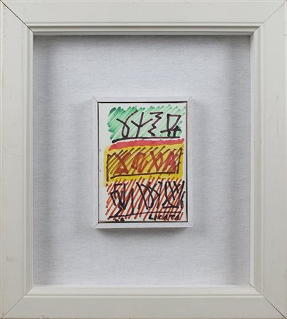 Lotto 5 RICCARDO LICATA, Senza titolo, 1998, Tempera su cartoncino, Dim. 25x35, Opera accompagnata da autentica dell' Artista su foto, Al fronte: datato in basso a sinistra, firmato in basso a destra