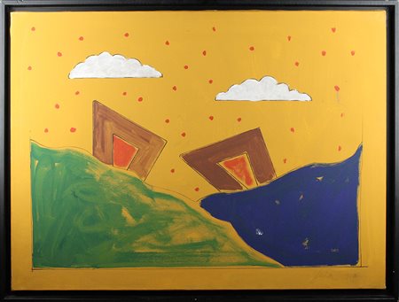 Lotto 6 TANO FESTA, Senza titolo, 1983, Acrilico su tela, Dim. 60x80, Al verso: dedica ad personam e firma, Al fronte: datato e firmato in basso a destra, Opera con cornice