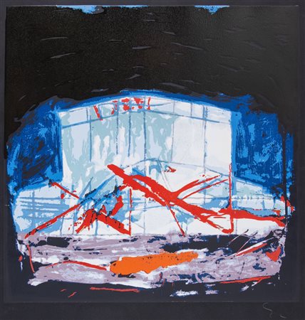 Lotto 5 Mario Schifano (Homs 1934 - Roma 1998), “Senza titolo”. Serigrafia materica a smalti, firmata in basso a destra Schifano, esemplare in basso a sinistra P.A., Lastra H cm 63.5x63.5 - Foglio H cm 100x70 (lievi usure - difetti)