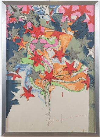 Lotto 9 Mario Schifano (Homs 1934 - Roma 1998), “Tutte stelle”, prima metà degli Anni ’70. Serigrafia a colori su carta, esemplare unico, firmata in basso a destra Schifano, H cm 96x66.5 - Opera accompagnata da certificato di autenticità dell'Archivio Mario Schifano - Roma, a cura di Monica Schifano, al N. S0108220305.