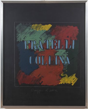Lotto 11 Tano Festa (Roma 1938 - 1988), “Fratelli Collina/Omaggio al colore”, Anni ’70. Smalti e acrilici su tela, titolata in basso al centro “Omaggio al colore”, firmata al retro Festa, H cm 100x80 - Opera accompagnata da certificato di autenticità dell'Archivio Tano Festa - Roma, con numerazione 701008/1264.