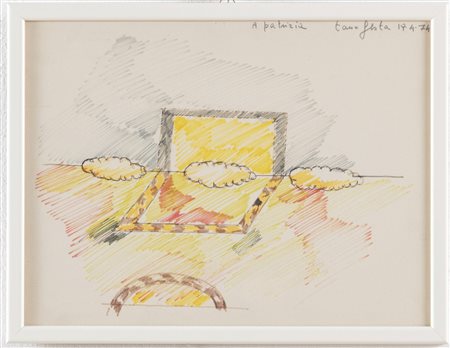 Lotto 12 Tano Festa (Roma 1938 - 1988), “Senza titolo”, 1974. Disegno a colori su carta, firmato e datato in alto a destra “Tano festa 19-4-74”, reca dedica in alto al centro, H cm 23.5x31