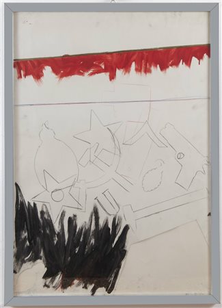 Lotto 14 Franco Angeli (Roma 1935 - 1988), “Interpretazione moralistica di una relazione impossibile tra due simboli”, 1969. Tecnica mista su cartoncino, firmata e datata in basso a destra “1969 Franco Angeli”, H cm 75x105 - Opera in corso di archiviazione presso l'Archivio Franco Angeli - Roma (con permesso di pubblicazione da parte dell'archivio).