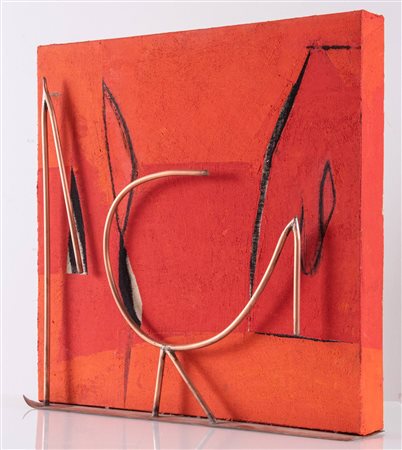 Lotto 16 Tommaso Cascella (Roma 1951), “Dalla casa della memoria”, 2007. Tecnica mista e bronzo su tavola, al retro reca firma, data e titolo “Tommaso Cascella/2007/Dalla casa della memoria” e iscrizione CAT. 69/07, H cm 50x50x10 (lievi usure)