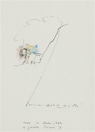 Lotto 18 Giosetta Fioroni (Roma 1932), “Casa di Baba-Jaga”, 1979. Tecnica mista su carta, reca titolo e firma in basso al centro “Casa di Baba-Jaga/di Giosetta Fioroni '79”, H cm 24x18