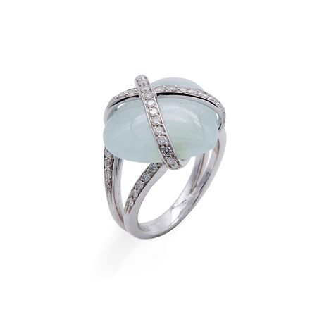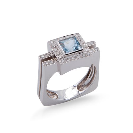 Lotto 4 Anello in oro bianco con acquamarina e brillanti