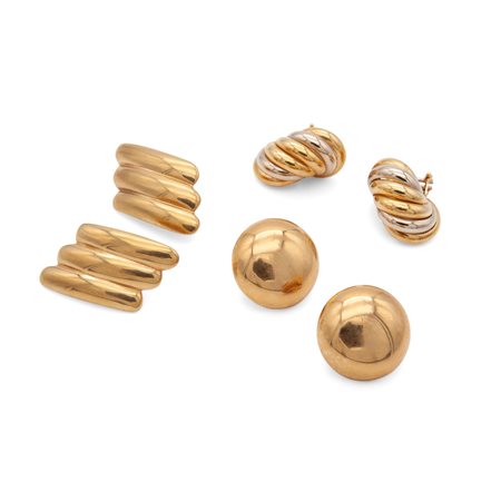 Lotto 13 Lotto di tre orecchini a lobo in oro giallo