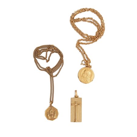 Lotto 14 Gruppo con due catene e tre pendenti in oro