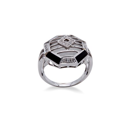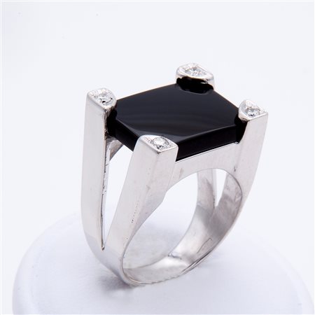 Lotto 23 Anello chevalier con elemento in onice e brillanti ai vertici
