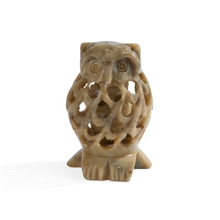 Lotto 3 Gufo in pietra saponaria traforata, arte cinese contenente un gufo all'interno, cm 7,5x5x3,5
