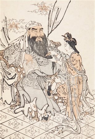 Lotto 11 Figure teatrali dell'opera cinese, china su carta uomo dalla lunga barba pettinata da una geisha, cm 20,5x14 - con il passepartout: cm 34x23