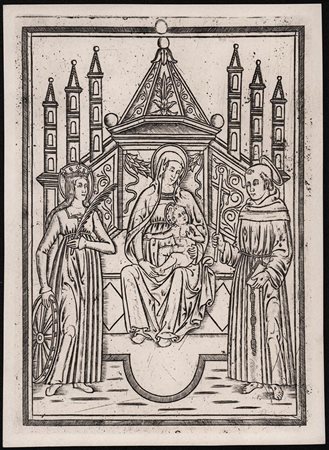 Rare engraving printed on paper with the watermark (Hat) similar to Briquet n. 3453, Vicenza 1521 ca. Perfette condizioni del foglio con margini che variano da uno a due cm tutt’intorno. -