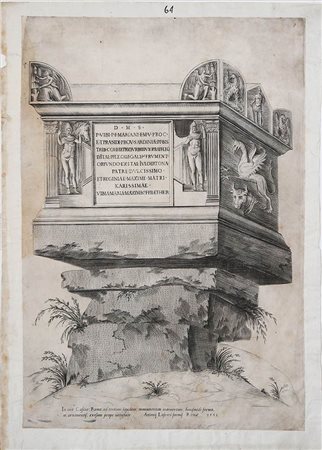 Firmato in basso al centro: « Antonij Lafreri Formis Romæ 1551». Parte dello "Speculum Romanae Magnificentiae". La stampa ritrae il sepolcro eretto lungo la via Ostiense in onore del prefetto di Roma Antonio Anzio Lupo (oggi non più esistente).