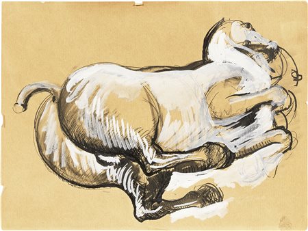 Matita, china e china diluita su carta