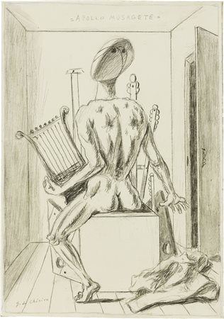 Firma in basso a sinistra: G. de Chirico, titolo in alto al centro: Apollo Musagete.