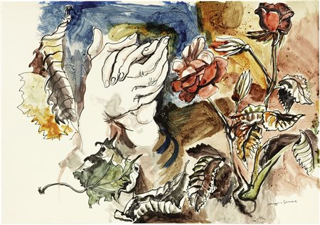 Data, firma e titolo in basso a destra: 10-8-64 / Guttuso / Omaggio a Grünewald. -