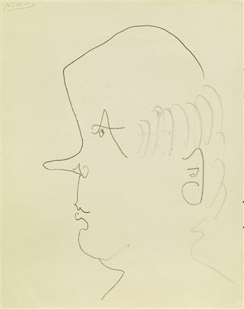Firma in alto a sinistra: Picasso; al verso altri studi di testa di profilo.