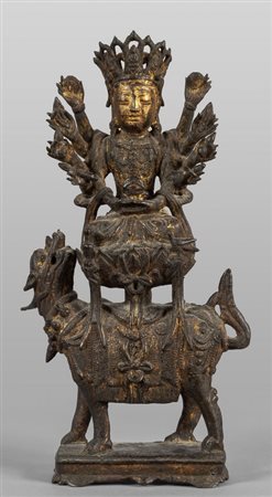 Lotto 0418 Divinità a cavallo di Kilin gruppo in bronzo Cina sec.XVII