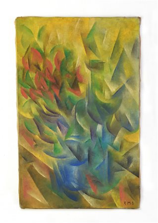 Appartiene al lungo ciclo degli esperimenti su "dinamismo e simultaneita'" mutuati dallo studio dell'opera di Boccioni. Sara' via via questa sintesi, divenuta sempre piu' estrema e ricondotta alle forme elementari, che in seguito diverra' il "telaio" del ritorno alla figurazione futurista e della definizione del suo stile personale, cioe' quel figurativo dinamico a componenti geometrizzate che qui giu' si sta avvicinando ad una certa riconoscibilita', ovvero a quella del vaso e dei fiori.