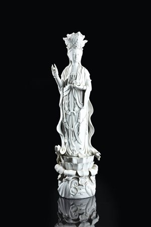 Guanyin in porcellana Blanc de Chine, Cina, Repubblica, XX secolo.