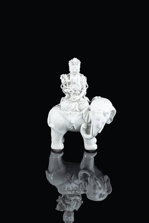 Blanc de Chine rappresentante Guanyin su elefante, Cina, dinstia Qing, XIX secolo.