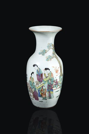 Vaso in porcellana decorato con scene di vita quotidiana e iscrizioni, Cina, XX secolo.