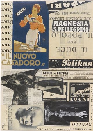 Gelindo Furlan Collage su carta 34,5x24,5 Senza titolo 1938 Autentica Arte Centro su foto; Pubblicato sul Catalogo "Il secondo futurismo, 1918-1940", Arte Centro, Milano