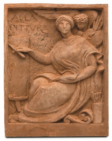 Archivio Sopraintendenza alla Galleria Nazionale d'Arte Moderna e Contemporanea: Antonio Maraini- Bozzetti per la Facciata della Galleria Ricci-Oddi. Alla Pittura, Alla Scultura , [1931] fotografie b/n;