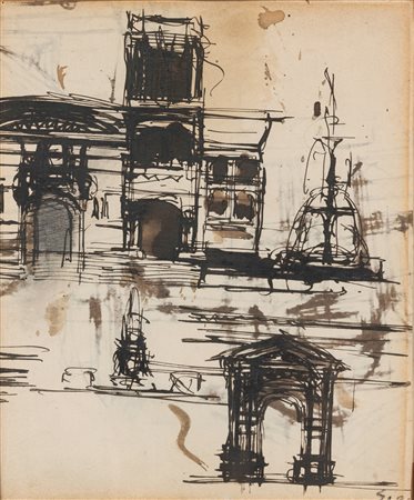 Al verso schizzo di studi architettonici a china