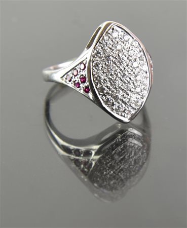 Lotto 15 ANELLO IN ORO BIANCO CON PICCOLO PAVE' IN DIAMANTI E RUBINI