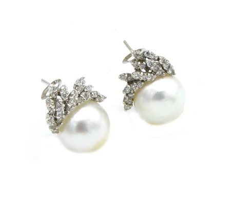 Lotto 20 ORECCHINI IN ORO BIANCO CON DIAMANTI E PERLA AUSTRALIANA