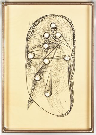 litografia a due colori su carta da lucido entro teca, cm 88x63x11; es. 99/150