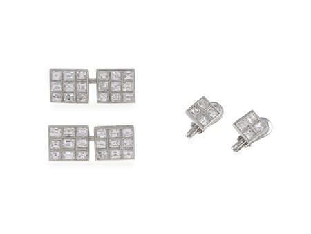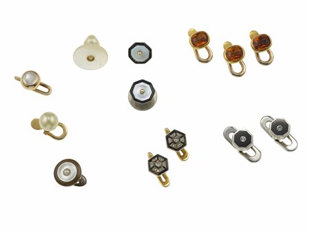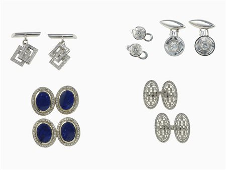 Lotto 12 Lotto composto da tre paia di bottoni da polso ed un paio di bottoni da polso e sparato, con diamanti