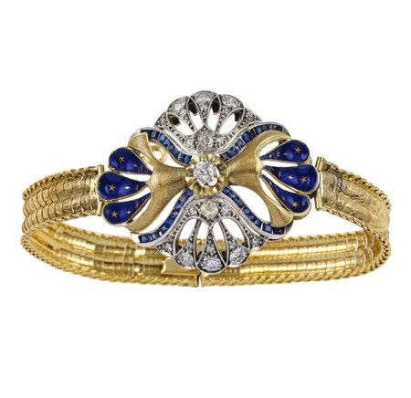 Lotto 21 Bracciale con motivo centrale in smalto blu e diamanti