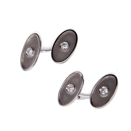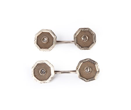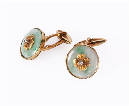 Lotto 1 Coppia di gemelli in oro, giada e brillante