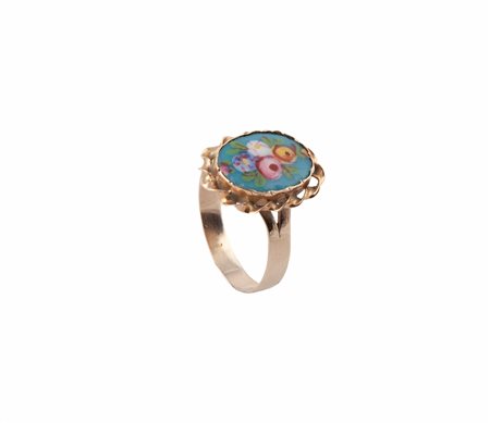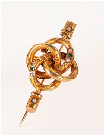 Lotto 24 Anello movibile moschina in oro, argento, perle e pietre preziose