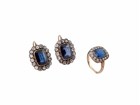Lotto 19 Demiparure antica con anello e coppia di orecchini in oro, argento e diamanti