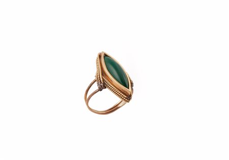 Oro giallo 750/000. Malachite tagliata a spola. Peso complessivo gr. 5,9.