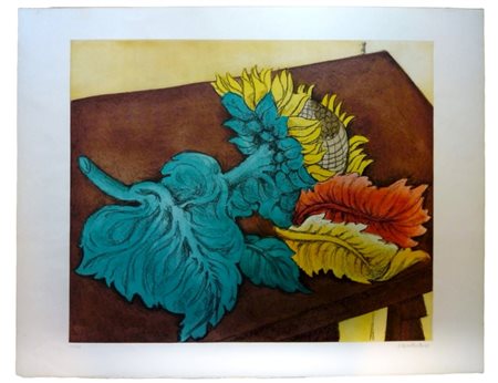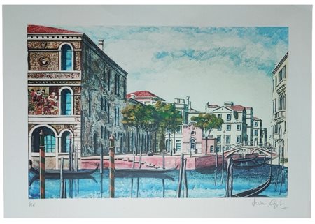 Litografia a colori, 59x 75 cm, firma a matita in basso a destra.