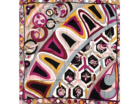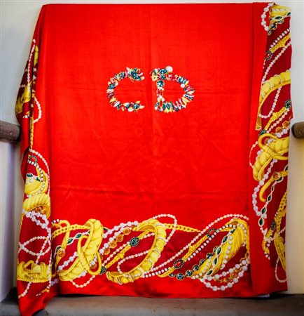 fantasia nei toni dell'arancione rosso su fondo nero, colletto con sciarpa