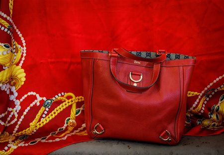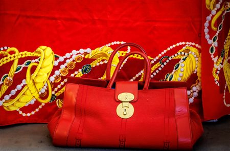 Roberta di Camerino, Borsa a mano in tessuto rosso e dettagli in pelle